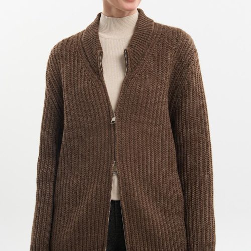 This chunky wool zip cardigan is designed for women who value comfort, structure, and elevated minimalism. Made from a soft wool-rich yarn, it features a thick ribbed texture, a smooth two-way zipper, and a relaxed silhouette that layers beautifully over any outfit.
