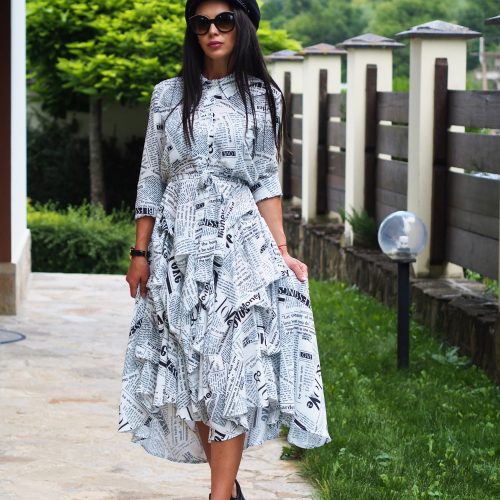 Turn heads this summer with this eye-catching newspaper print dress where comfort meets creativity.