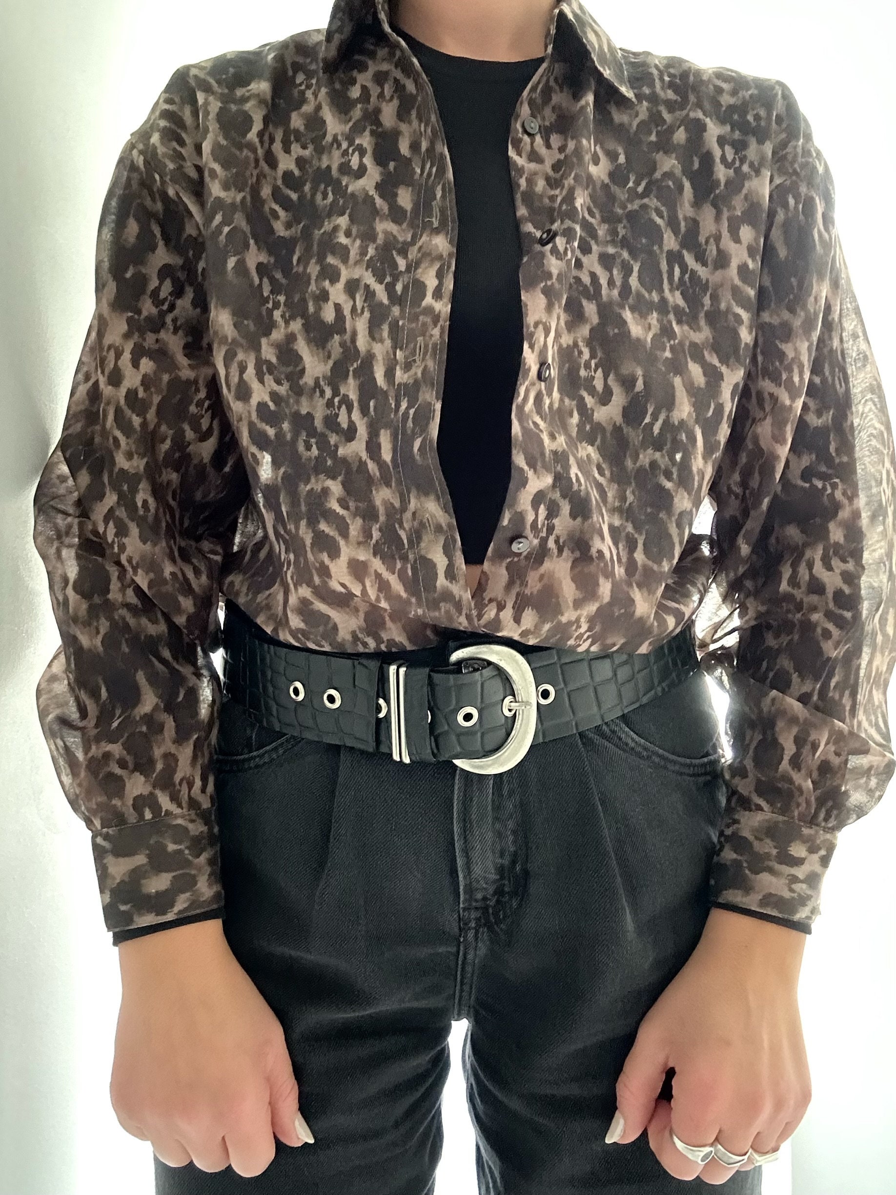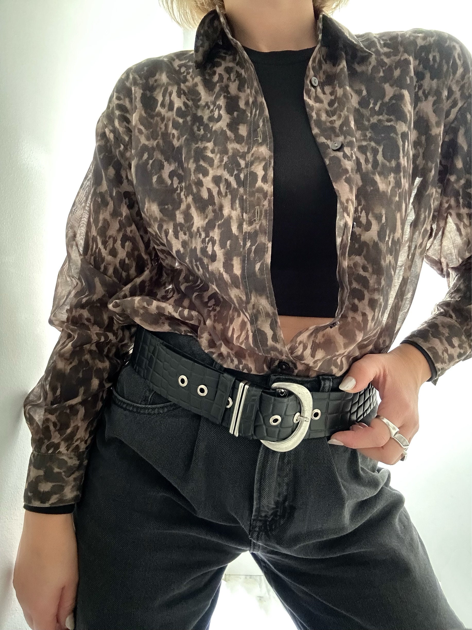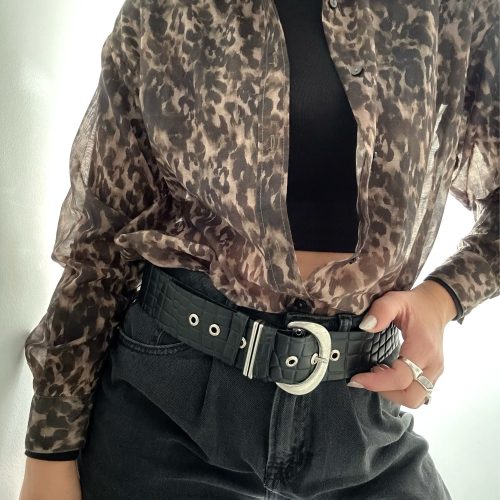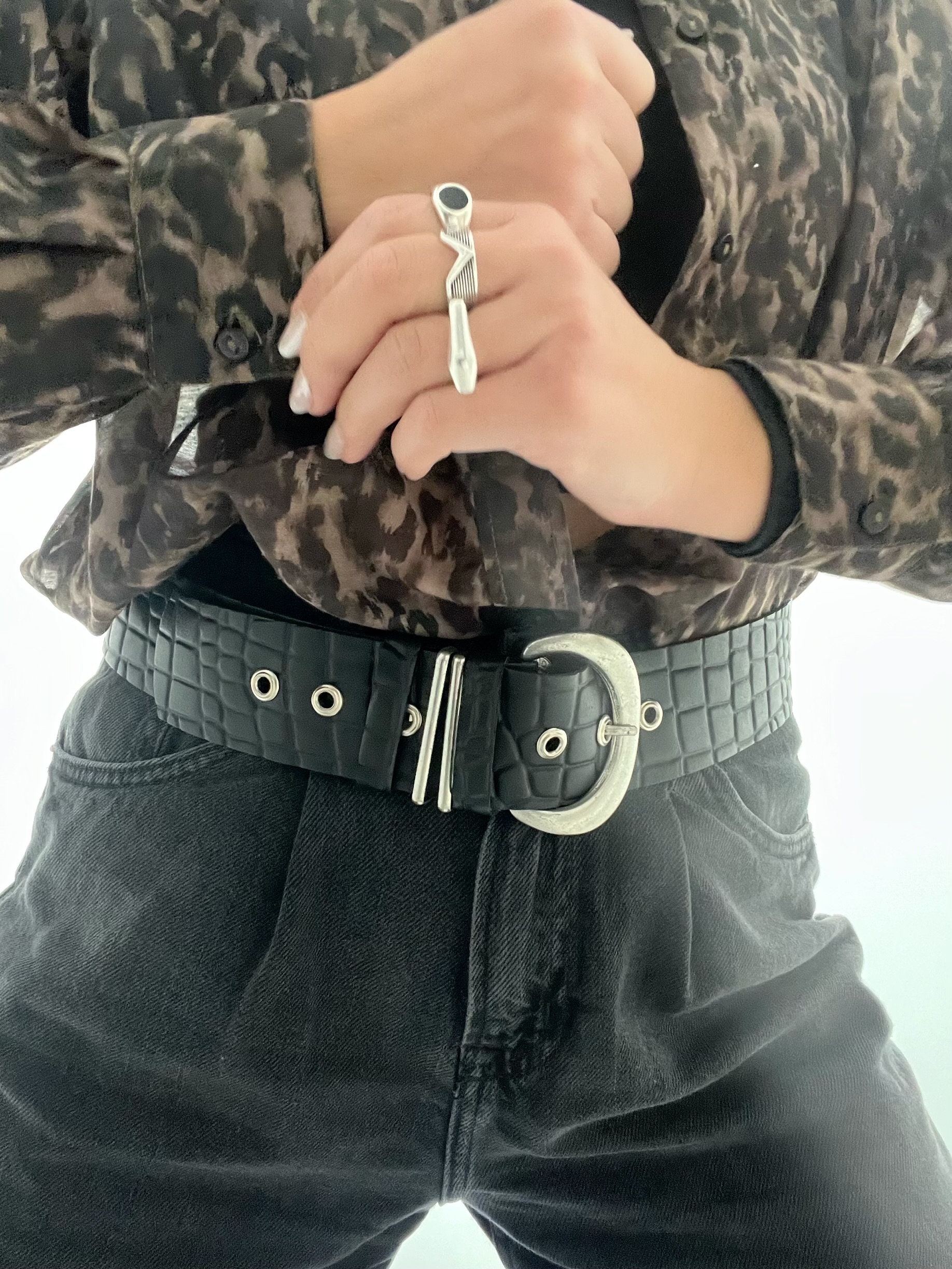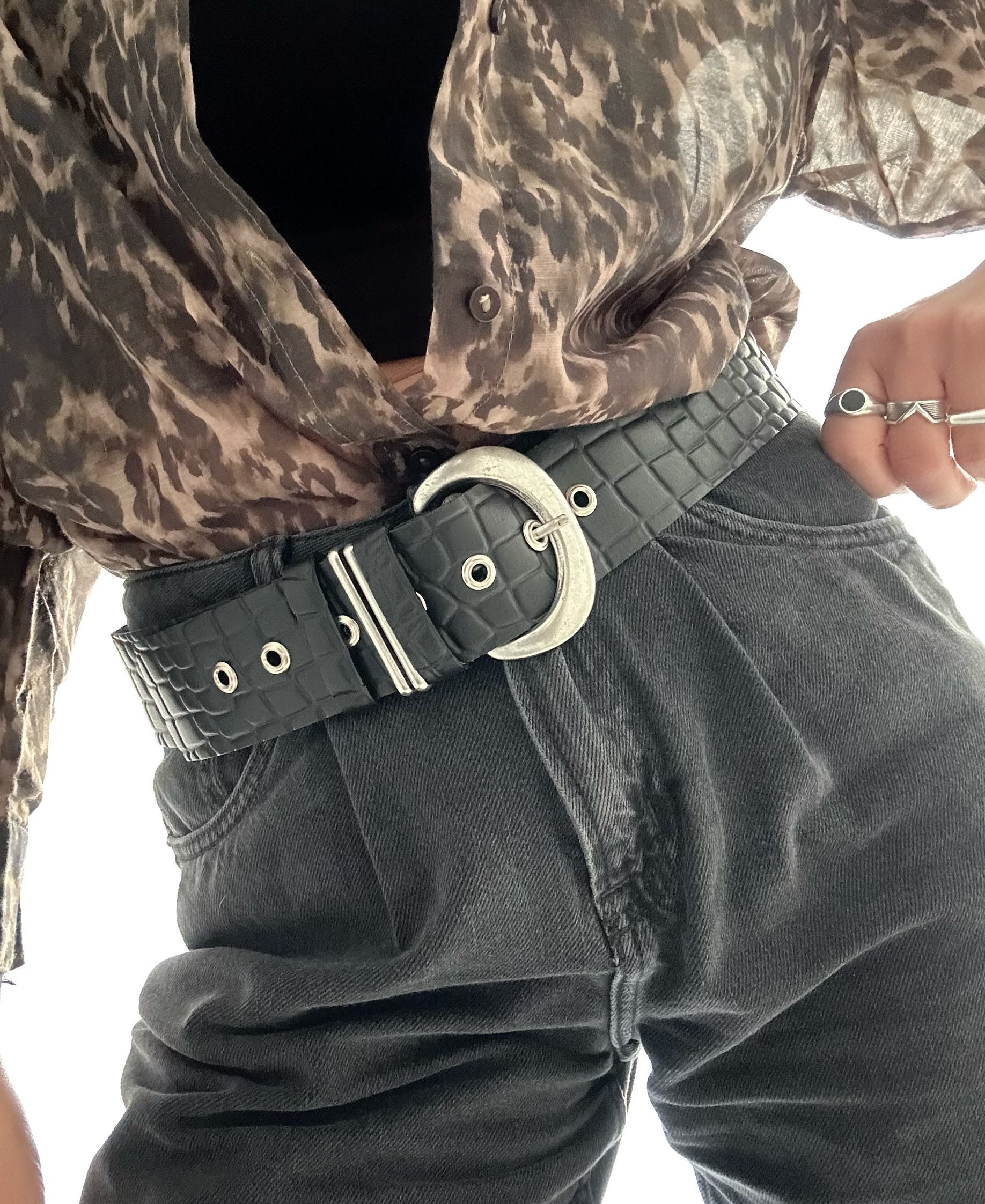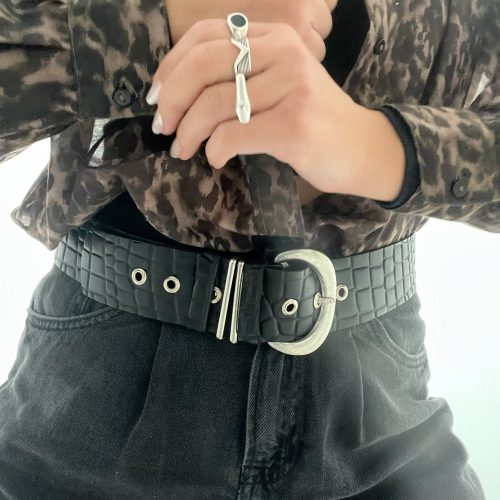 Wide Belt Black Leather Boho Silver Buckle Women