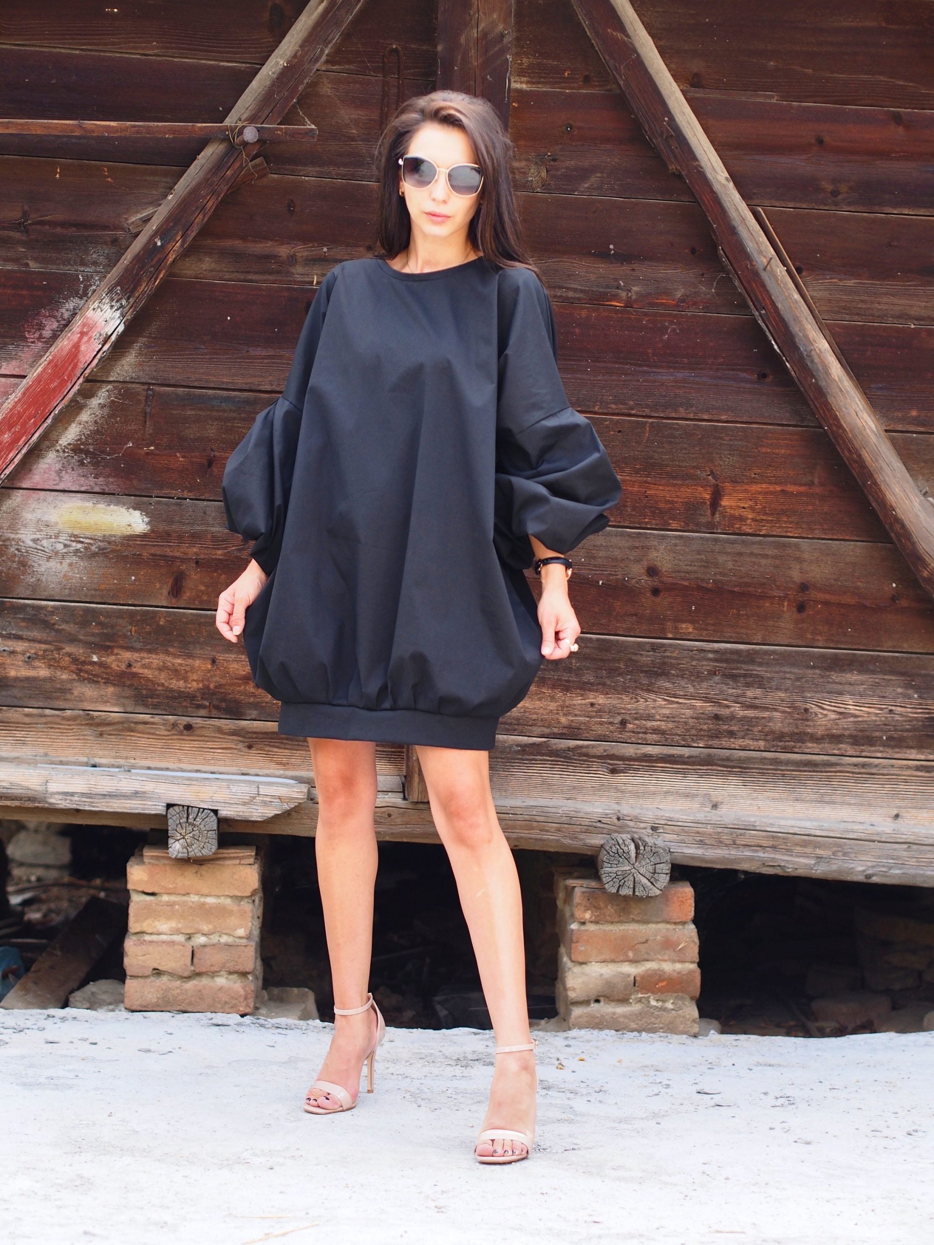 Women Oversize Dress Black Maxi Sleeve Extravagant Loose