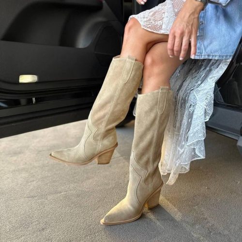 Step out in style with these women’s high cowboy boots. Featuring a long shaft and a small heel, they combine classic Western design with modern comfort. Perfect for casual outfits, trendy looks, or adding a boho touch to your wardrobe, these cowgirl boots pair effortlessly with jeans, skirts, or dresses. Made from durable materials, they offer comfort for all-day wear. A stylish choice for everyday wear, festivals, or special occasions, these boots are ideal for women who love fashion-forward, versatile footwear.