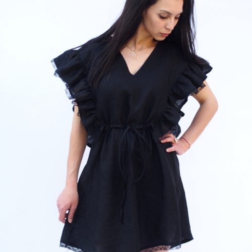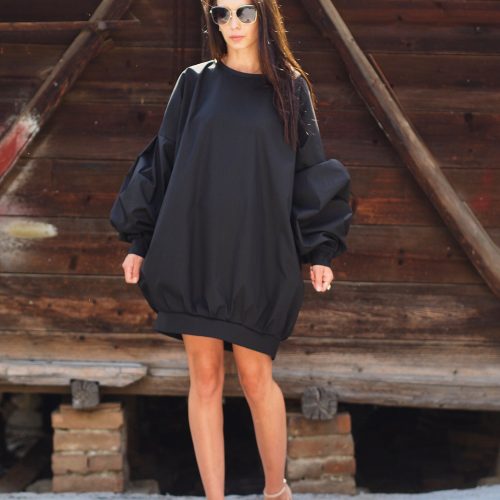 Women Oversize Dress Black Maxi Sleeve Extravagant Loose